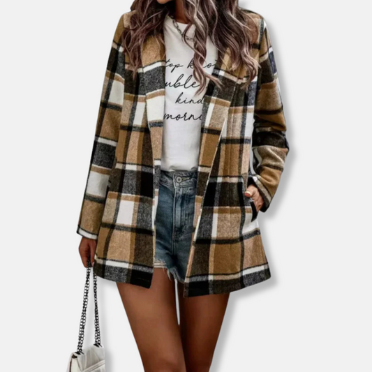 Amelia Wool Oversized Coat | Plaid Open Front Coat