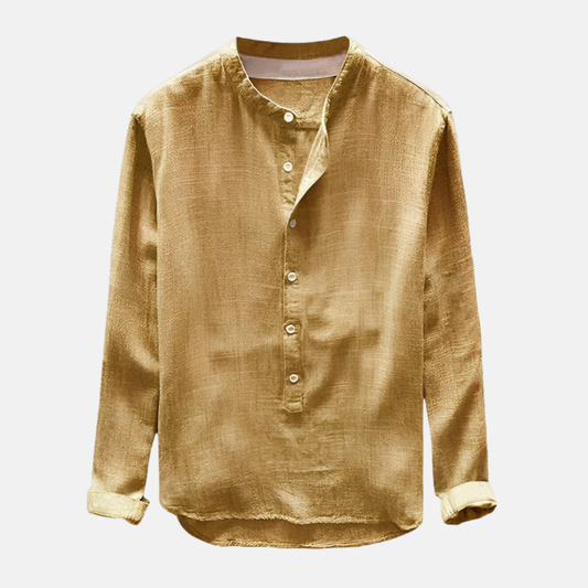 Carlo Linen Relaxed Fit Mao Collar Shirt | Long Sleeve Shirt