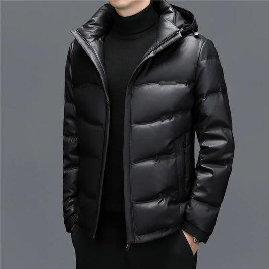 Mason Leather Hooded Puffer Jacket | Quilted, Zip Front Jacket
