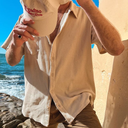 Casual men's shirt – Loose fit – Short sleeves – Breathable natural fibers – V-neck
