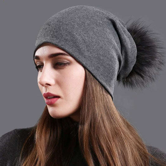 Luna Slouchy Pom Beanie – Soft Knit Winter Hat for Women