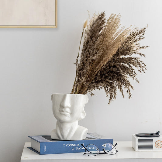 Modern Face-Shaped Ceramic Vase With Glossy Finish