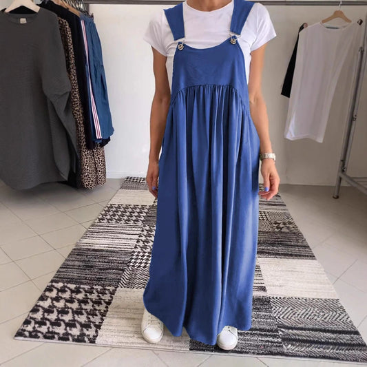 Women's long dress – Linen cotton – Loose fit – Buckled straps