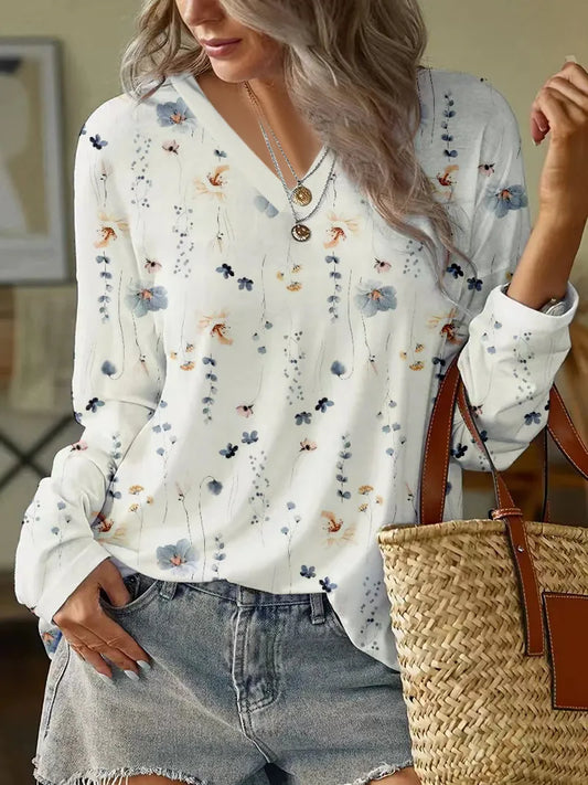 Women's blouse – Loose fit – V-neck – Long sleeves – Floral pattern – Breathable fabric