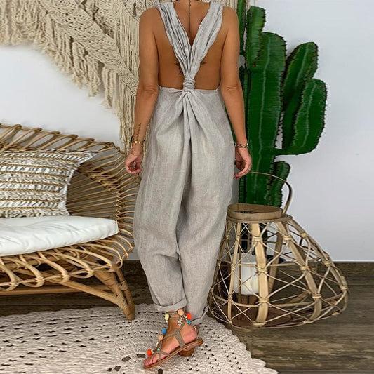 Women's jumpsuit – Loose fit – Natural fibers – Backless – Tied straps