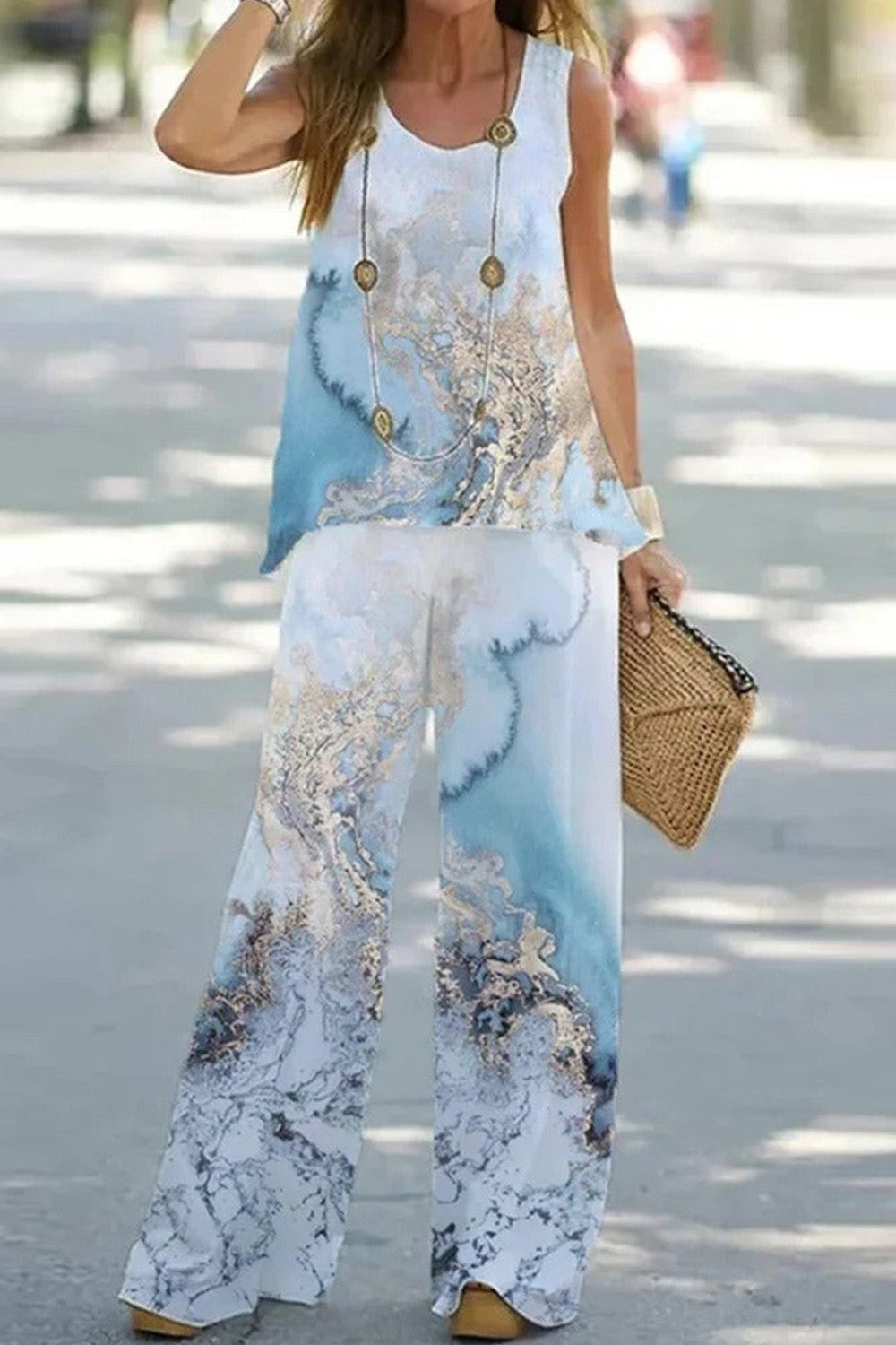 Pair this set with platform sandals for an elegant summer look, or opt for sneakers and a denim jacket for a relaxed urban vibe.