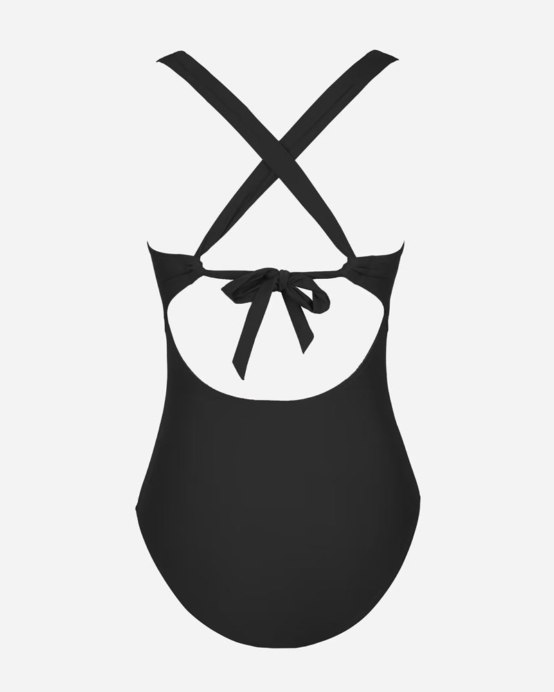 - Design : One-piece, shaping fit, plunging neckline, double straps