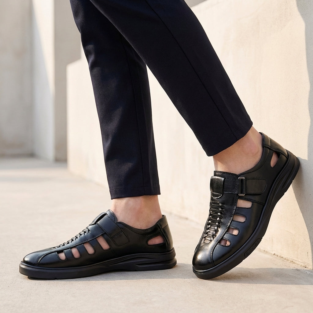 Explore the Comfort of Orthopedic Leather Closed-Toe Sandals for Men – Adjustable Comfort & Support