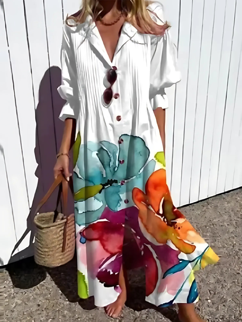 Women's long dress – Relaxed fit – Breathable fabric – Retro print
