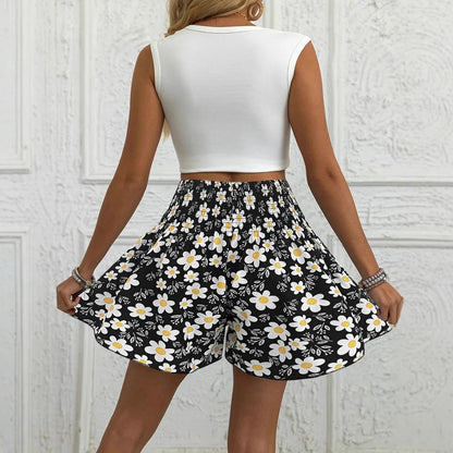 Women's shorts – Relaxed fit – Lightweight cotton – Elastic waist – Floral print
