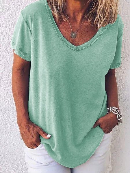 Women's T-shirt – Relaxed fit – Soft breathable fabric – Short sleeves – V-neck